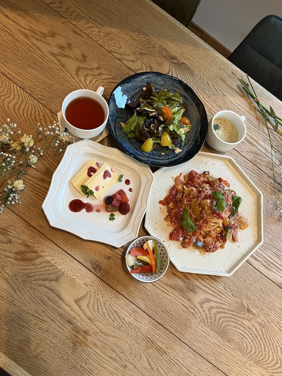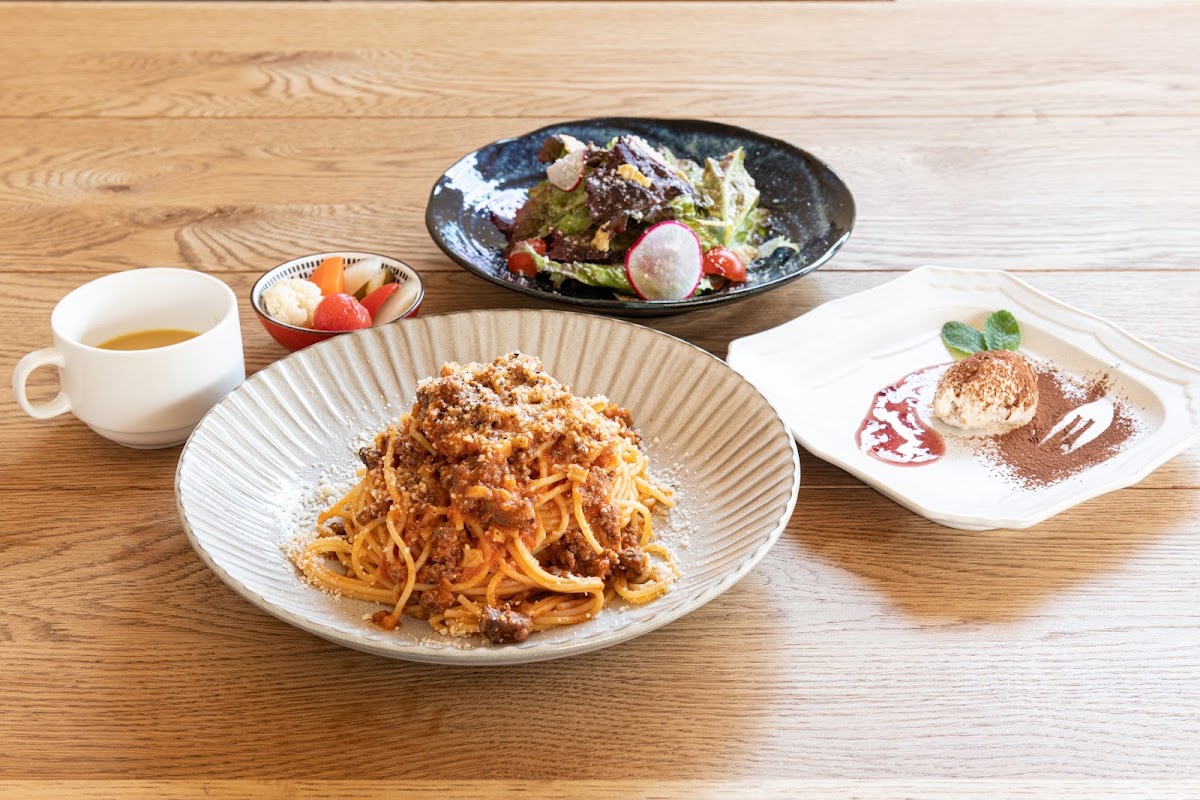The menu features a range of delicious dishes, predominantly focused on Italian cuisine. One of the stars is the self-made Bolognese pasta lunch, a hearty option for those craving authentic flavors. The meal, priced at ¥2,100, includes a beautifully arranged appetizer platter showcasing local Kyushu ingredients, along with a refreshing drink and a delightful dessert to round off your experience. Imagine twirling your fork through perfectly cooked pasta, the rich and savory Bolognese sauce clinging lovingly to each strand, punctuated by vibrant notes of tomato and herbs that can transport you straight to Italy.